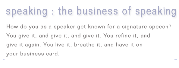 So how do you as a speaker get known for a signature speech?